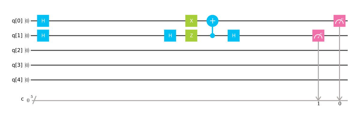 >>> d_2 = (H(0)*H(1))*(X(0)*X(1))*(H(0)*CNOT(1,0)*H(0))*(X(0)*X(1))*(H(0)*H(1))